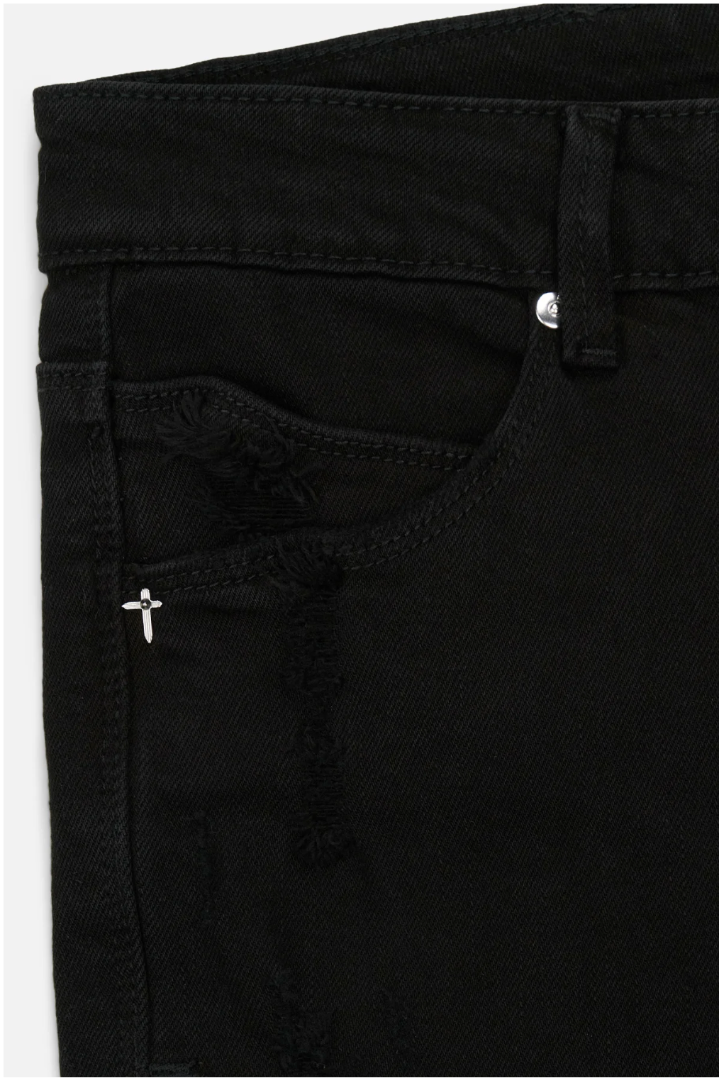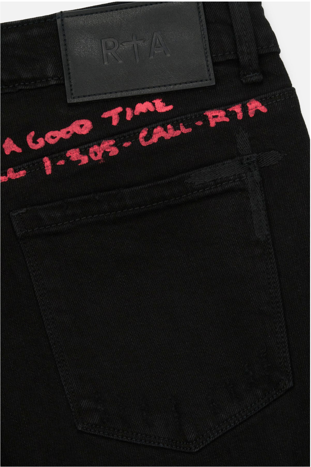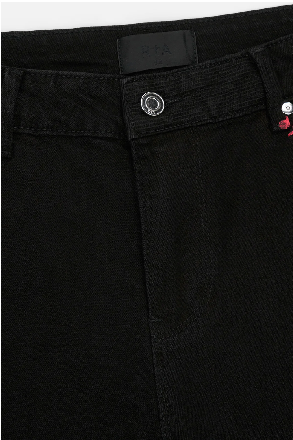 The Bryant Skinny Jean in Flower Acid Wash features a button front, zip fly, belt loops, front scoop pockets, and back patch pockets. Finished with monochromatic RTA logo stitched on the leg, classic RTA cross along the back pocket, and acid wash detailing.